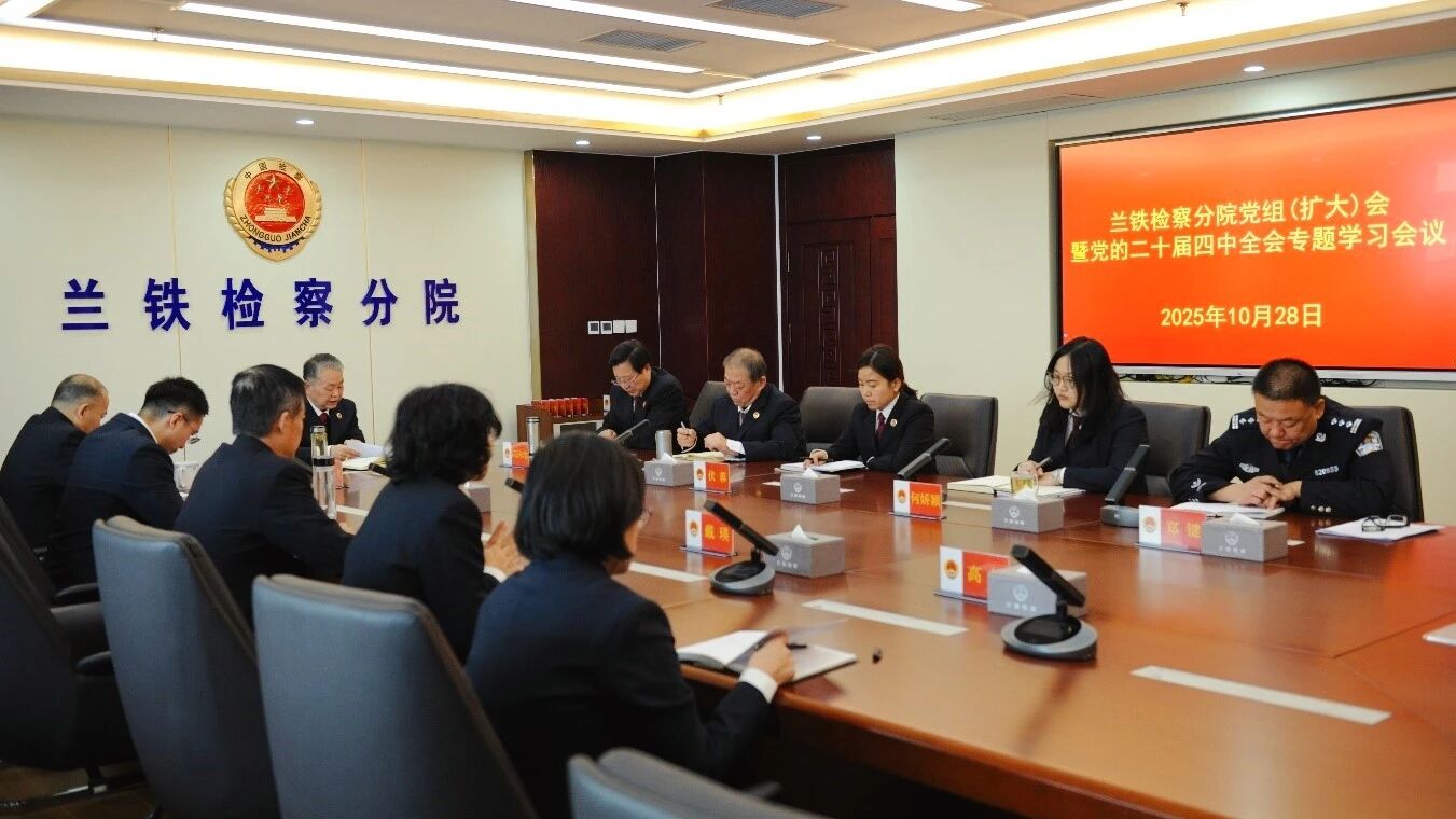 10月28日,甘肃省检察院兰州铁路运输分院党组书记、检察长马军主持召开党组(扩大)会议,专题学习贯彻党的二十届四中全会精神,研究贯彻落实举措。会议要求,要深刻领会“十四五”时期的重大成就与“十五五”时期的战略定位,自觉把各项检察工作放到全面建设社会主义现代化国家新征程中来考虑、谋划和推进,以检察履职的实绩实效持续抓好贯彻落实。要对标对表全会关于法治建设的重大部署,与贯彻落实《中共中央关于加强新时代检察机关法律监督工作的意见》结合起来,切实把学习成果转化为依法履职的政治自觉和司法实践。