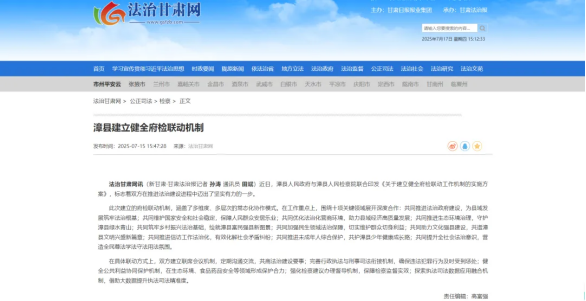 近日,漳县人民政府与漳县人民检察院联合印发《关于建立健全府检联动工作机制的实施方案》,标志着双方在推进法治建设进程中迈出了坚实有力的一步。